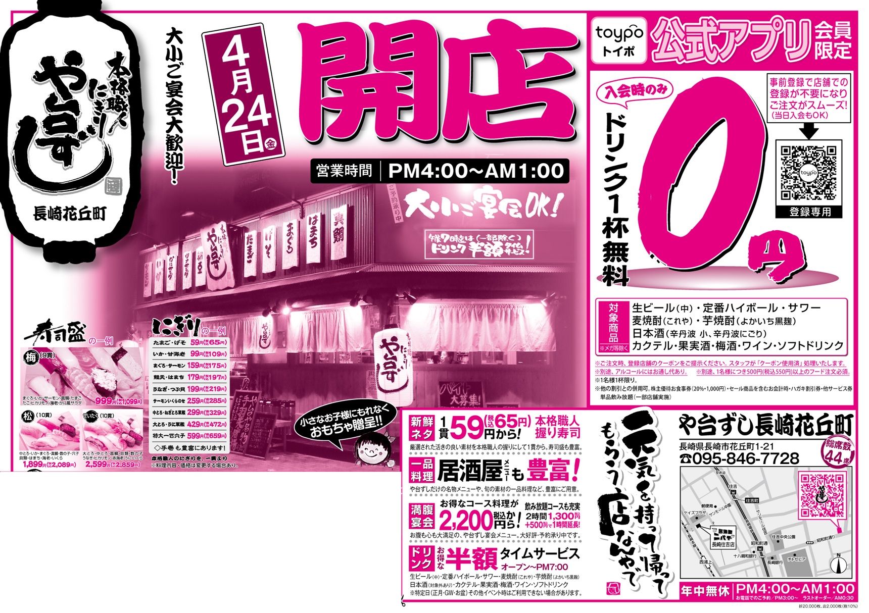 4月24日(金) 長崎県長崎市「や台ずし長崎花丘町」オープン予定!! New! -