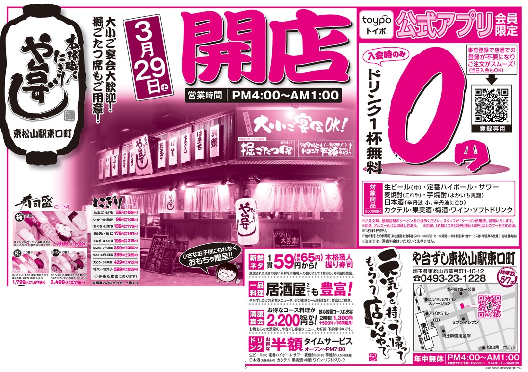 【オープン】や台ずし東松山駅東口町3月29日(土)~ -