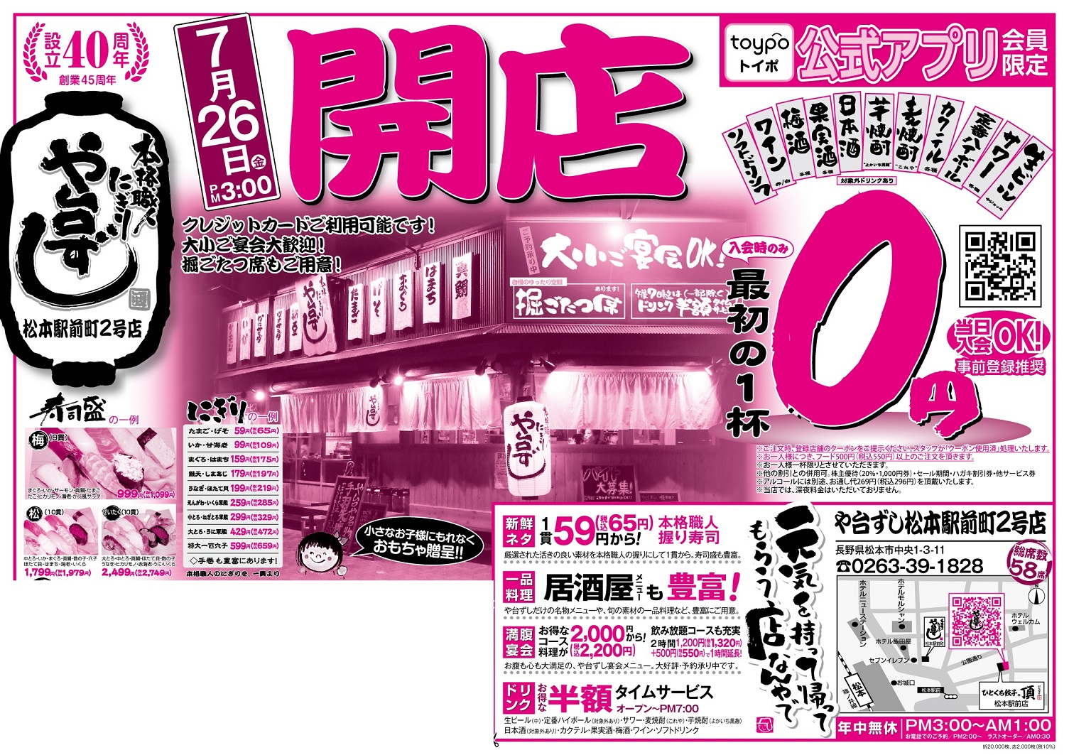【オープン】や台ずし松本駅前町2号店7月26日(金)~ -