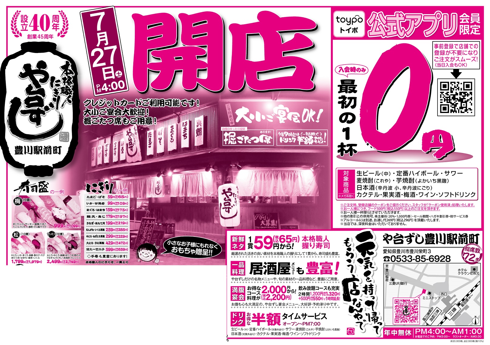 【オープン】や台ずし豊川駅前町7月27日(土)~ -