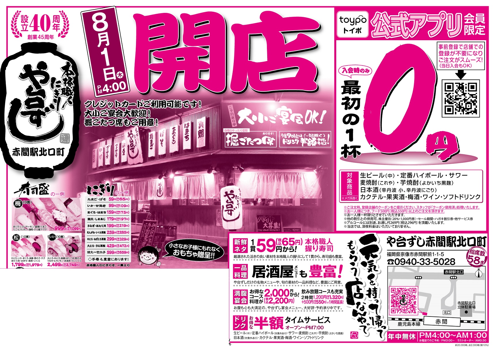 【オープン】や台ずし赤間駅北口町8月1日(木)~ -