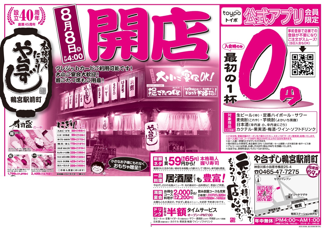 【オープン】や台ずし鴨宮駅前町8月8日(木)~ -