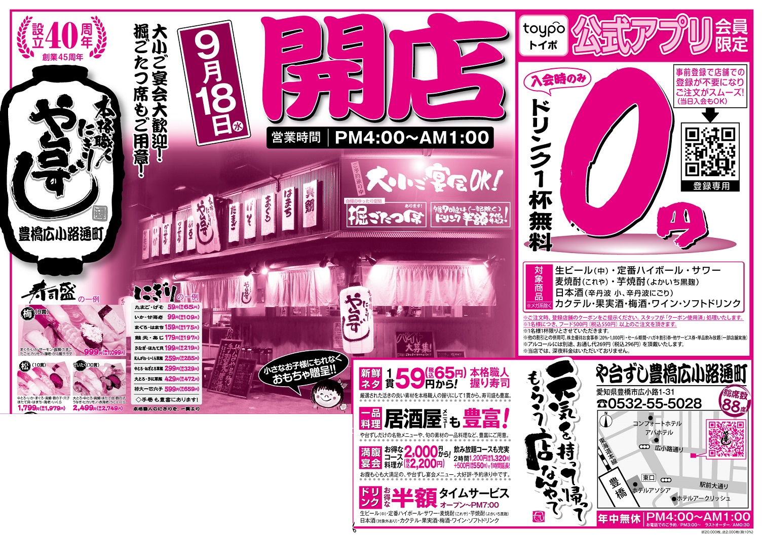 【オープン】や台ずし豊橋広小路通町9月18日(水)~ -