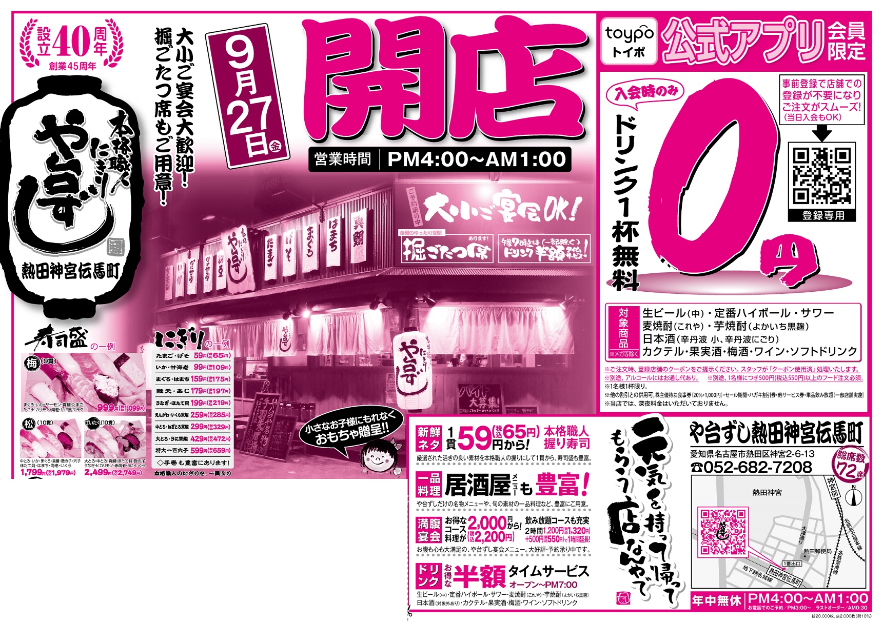 【オープン】や台ずし熱田神宮伝馬町9月27日(金)~ -