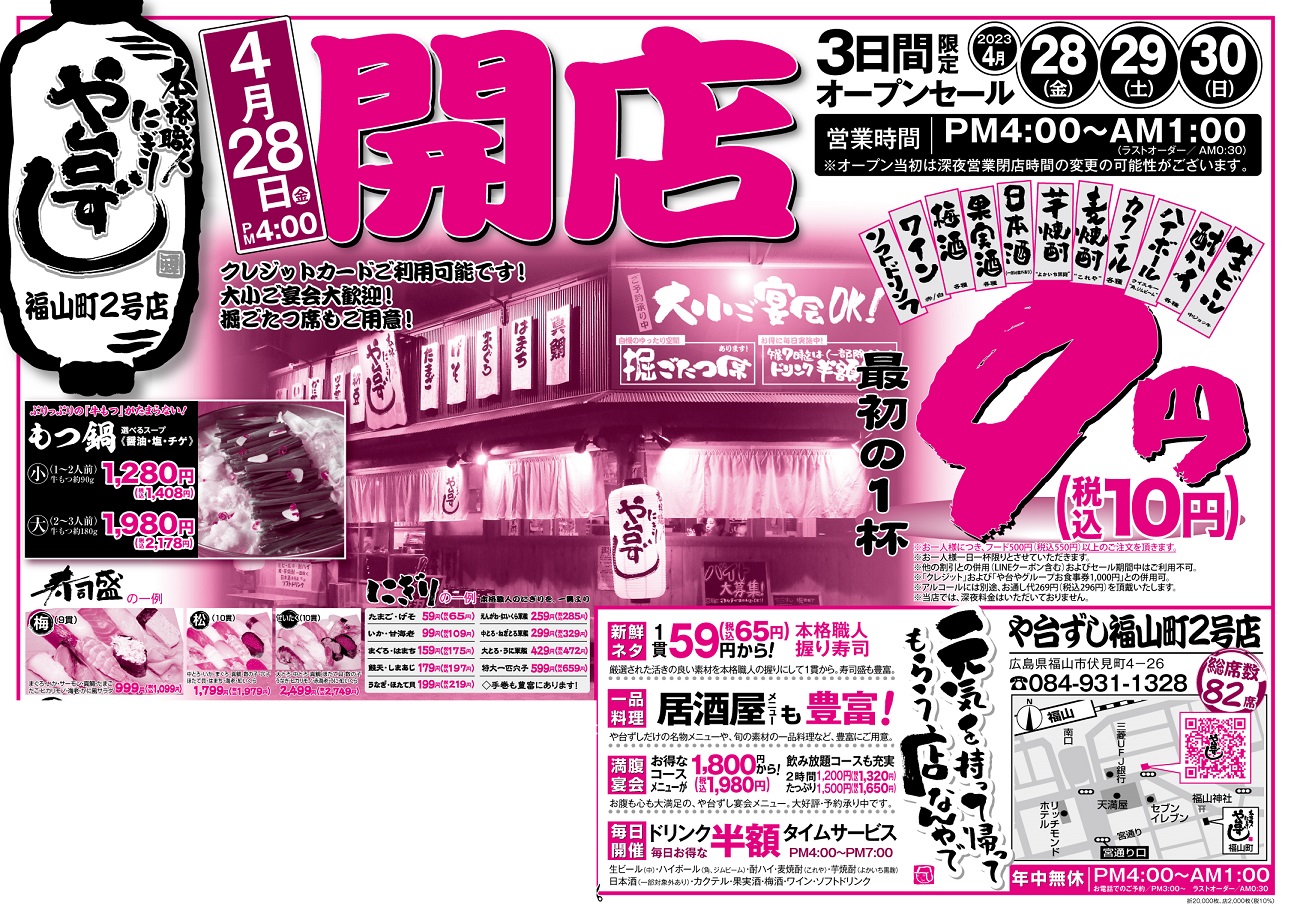【オープンセール】や台ずし福山町2号店4月28日(金)~4月30日(日)