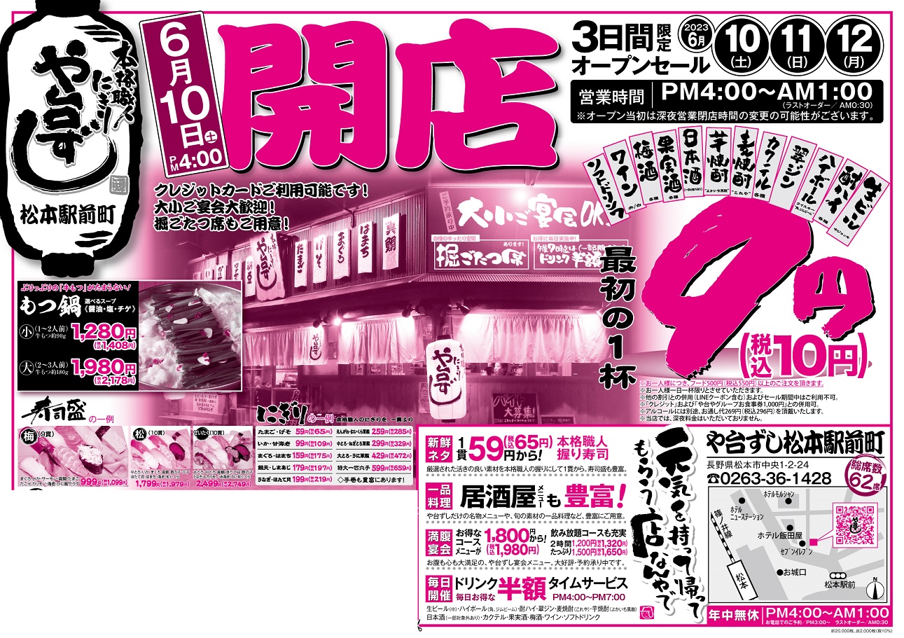 【オープンセール】や台ずし松本駅前町6月10日(土)~