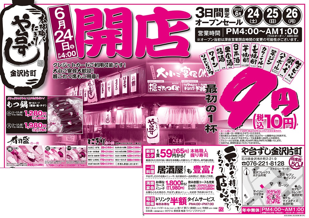 【オープンセール】や台ずし金沢片町6月24日(土)~