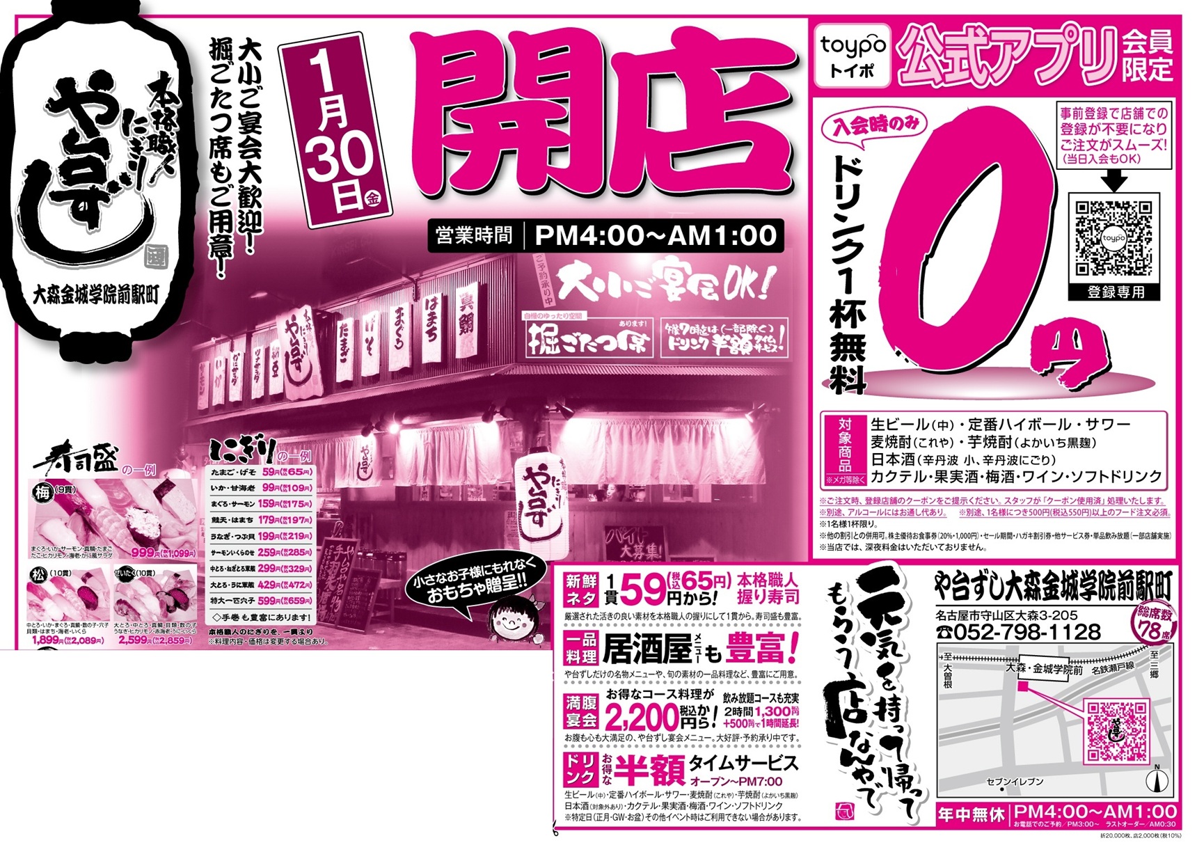 1月30日(金) 愛知県名古屋市「や台ずし大森金城学院前駅町 」オープン!!